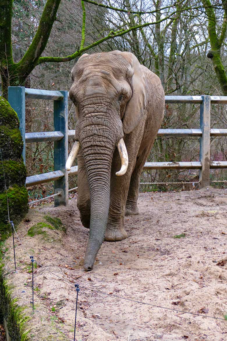 Afrikanischer Elefanten-Bulle TOOTH am 31. Dezember 2022 auf der Bullen-Außenanlage am Elefanten-Haus im Zoologischen Garten Wuppertal.