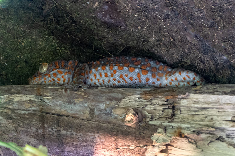 Tokeh am 8. Februar 2023 im Terrarium im Zoologischen Garten Wuppertal.