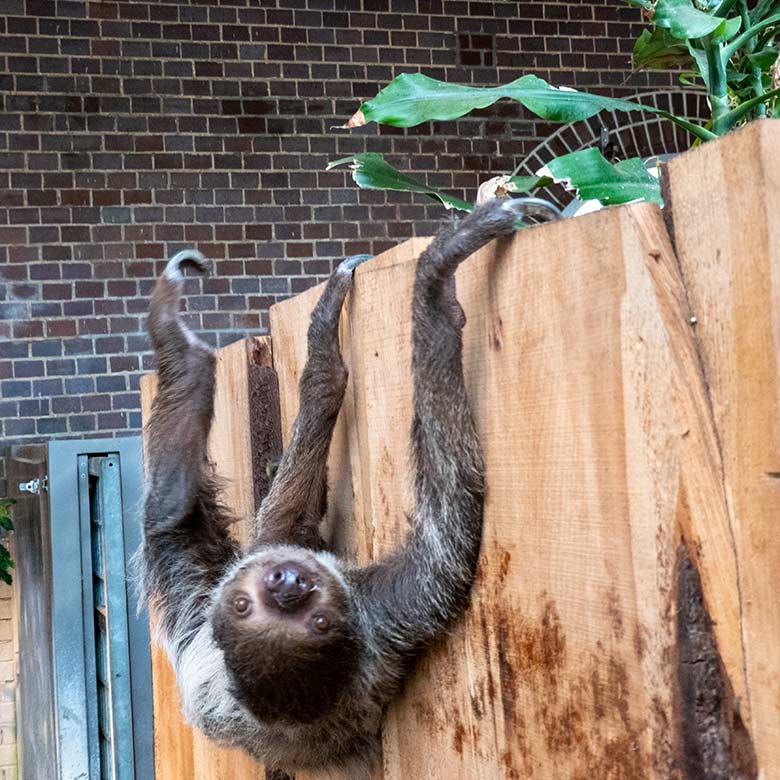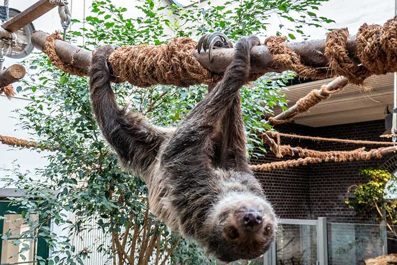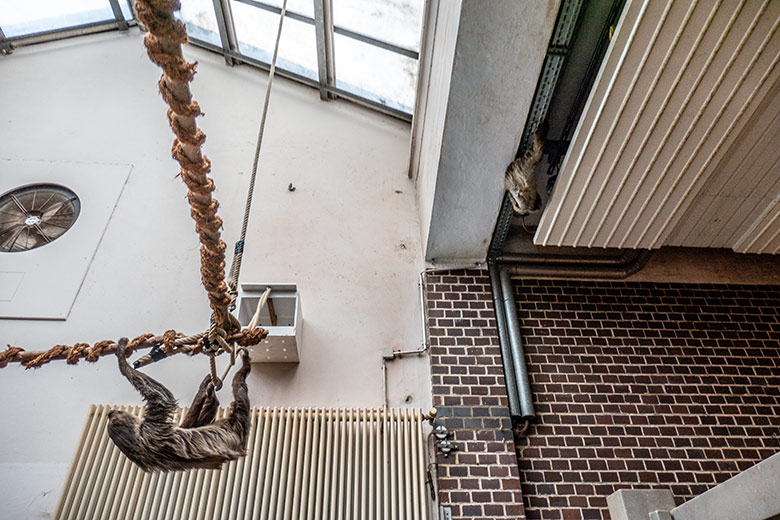 Rund eine Stunde hangelte und kletterte das weibliche Zweifingerfaultier "Sarita" durch das Südamerika-Haus und konnte dabei von Zoogästen auch aus der Nähe betrachtet werden.