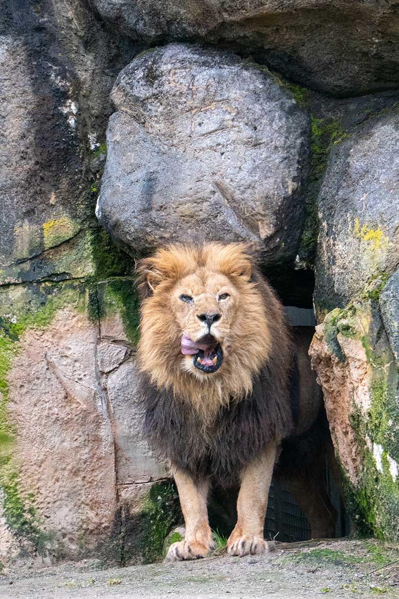 Afrikanischer Löwen-Kater SHAWANO am 25. Februar 2023 im Löwen-Haus im Zoo Wuppertal.