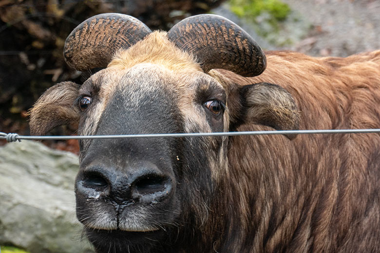 Mishmi-Takin-Kühe MINJA, TASHI und KARUNA am 19. Februar 2024 auf der Erweiterungs-Anlage im Zoologischen Garten der Stadt Wuppertal.