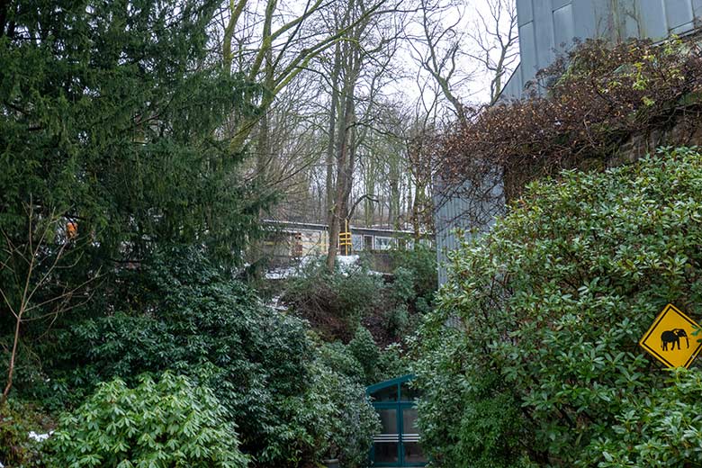 Blick vom Besucher-Weg vor dem Elefanten-Haus auf die Gebäude des ehemaligen Max-Planck-Institut am 16. Januar 2025 im Grünen Zoo Wuppertal.