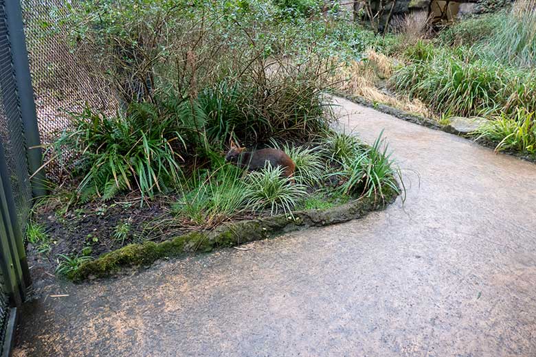 Männlicher Südpudu am 26. Januar 2025 in der Aralandia-Voliere im Zoo Wuppertal.