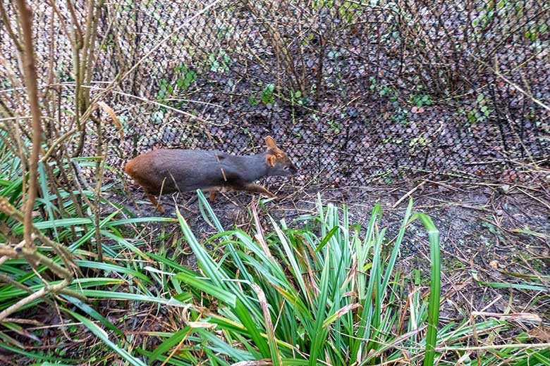 Männlicher Südpudu am 26. Januar 2025 in der Aralandia-Voliere im Wuppertaler Zoo.