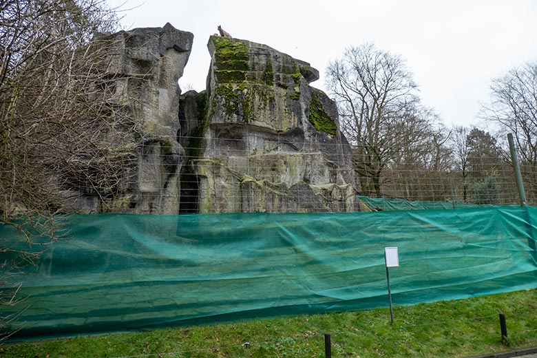Die verschneite sogenannte Löwen-Savanne am 10. Januar 2025 im Grünen Zoo Wuppertal.