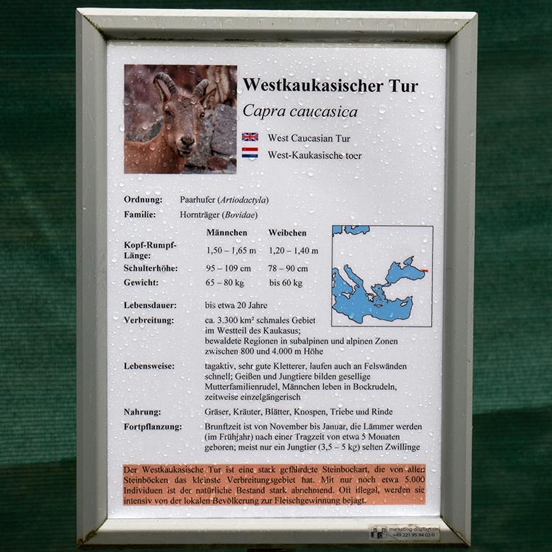 Auf der am 2. Januar 2025 im Grünen Zoo Wuppertal angebrachten Ausschilderung am unteren Rand der Steinbockanlage wird die Tierart 'Westkaukasischer Tur' genannt.