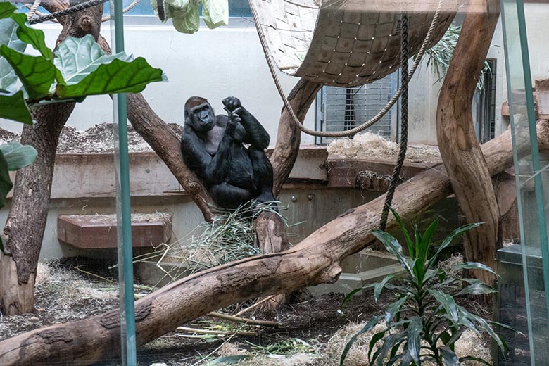 Weiblicher Westlicher Flachlandgorilla GRACE am 2. Februar 2025 im Menschenaffen-Haus im Zoo Wuppertal.