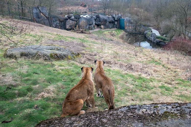 Am 24. Februar 2025 waren die beiden weiblichen Löwen im Zoologischen Garten der Stadt Wuppertal oben auf der großen Löwen-Außenanlage zu sehen.