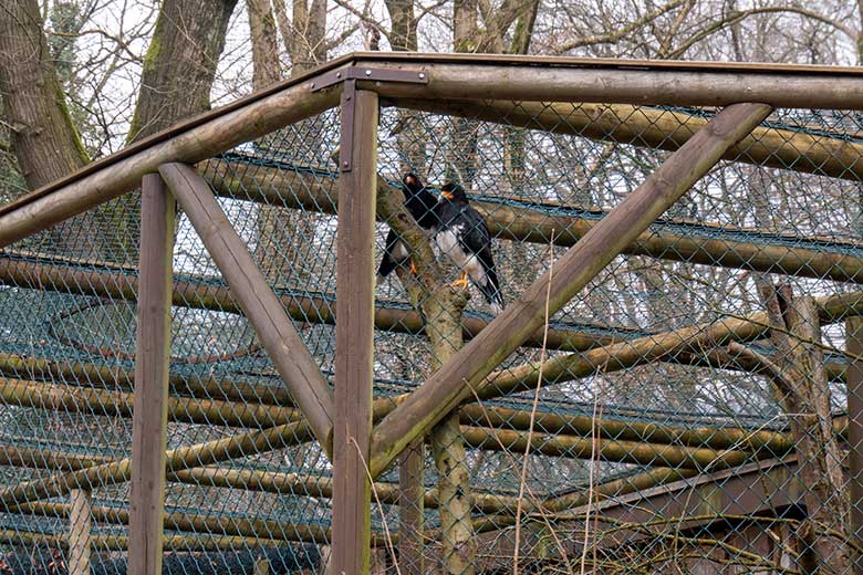 Männlicher Berg-Karakara und weiblicher Berg-Karakara am 4. Februar 2025 in dem rechten Teil der Außenvoliere neben dem Kleinkatzen-Haus im Grünen Zoo Wuppertal.