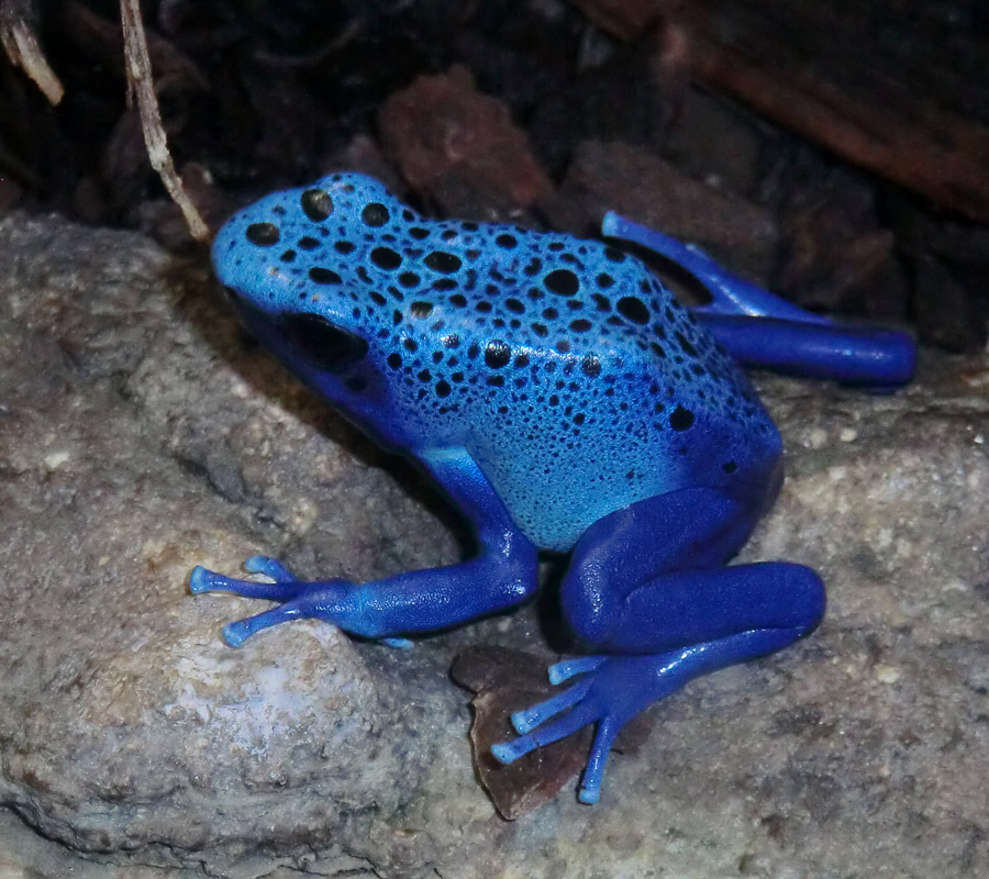 Blauer Pfeilgiftfrosch im Wuppertaler Zoo im November 2012.