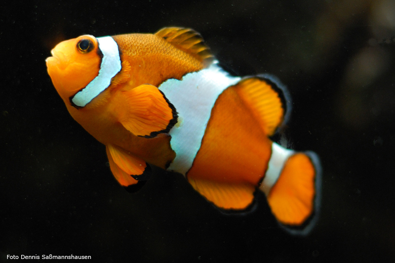 Schwarzer Orangeringelfisch (Amphiprion ocellaris) im Zoo Wuppertal im Dezember 2014.