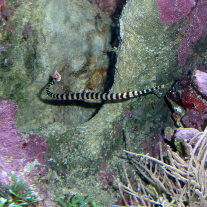 Die Zebra-Seenadel gehört zur Familie der Seenadeln (Syngnathidae).