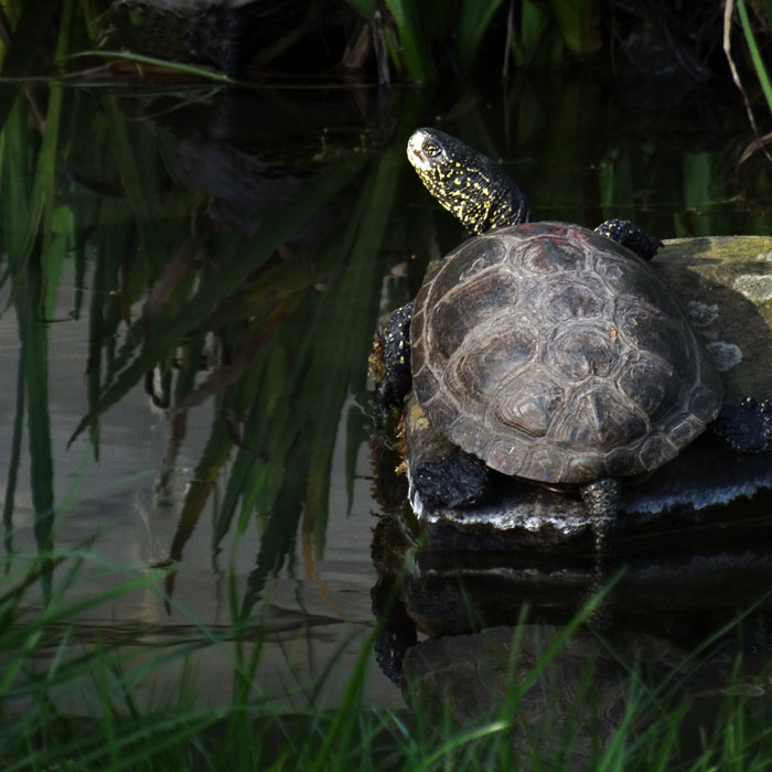 Die Europäische Sumpfschildkröte gehört zur Familie der Neuwelt-Sumpfschildkröten (Emydidae).