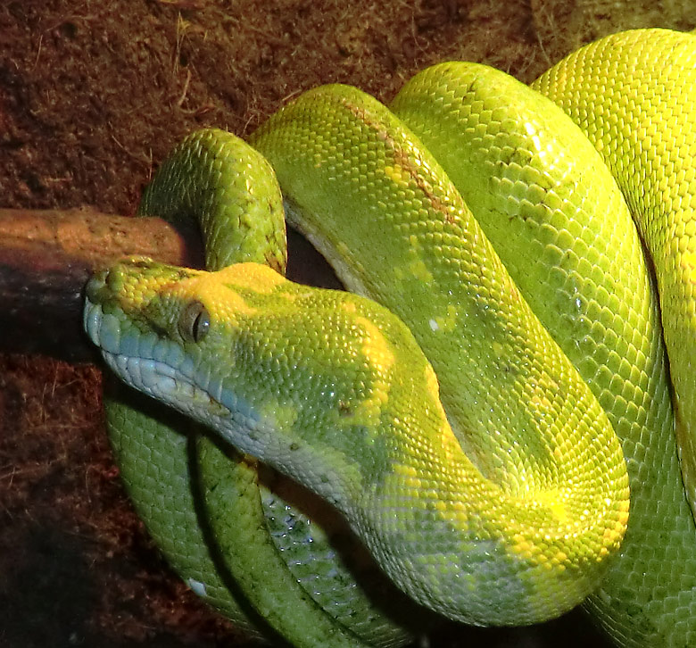 Grüner Baumpython im Wuppertaler Zoo im Februar 2011.