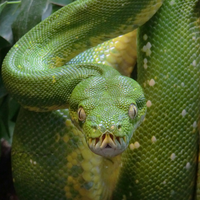 Grüner Baumpython im Wuppertaler Zoo im Juni 2011.