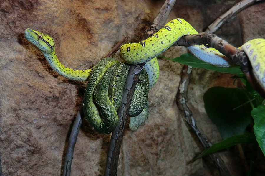 Grüner Baumpython Jungtiere im Wuppertaler Zoo am 16. November 2012.