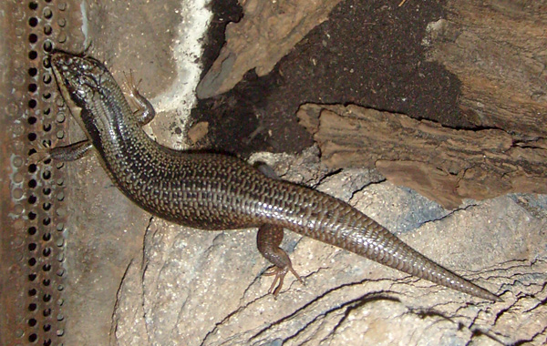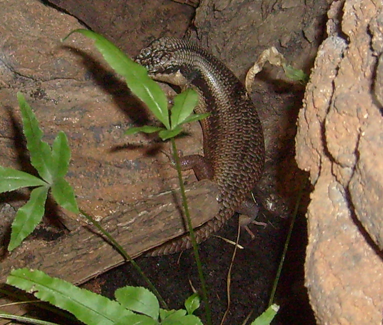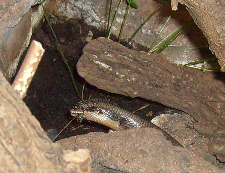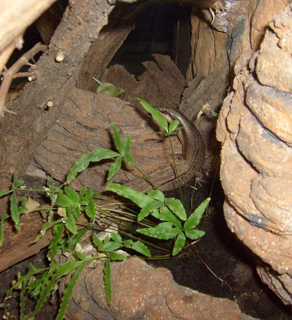 Schwer zu erkennender Baumskink im Zoo Wuppertal im Dezember 2008.
