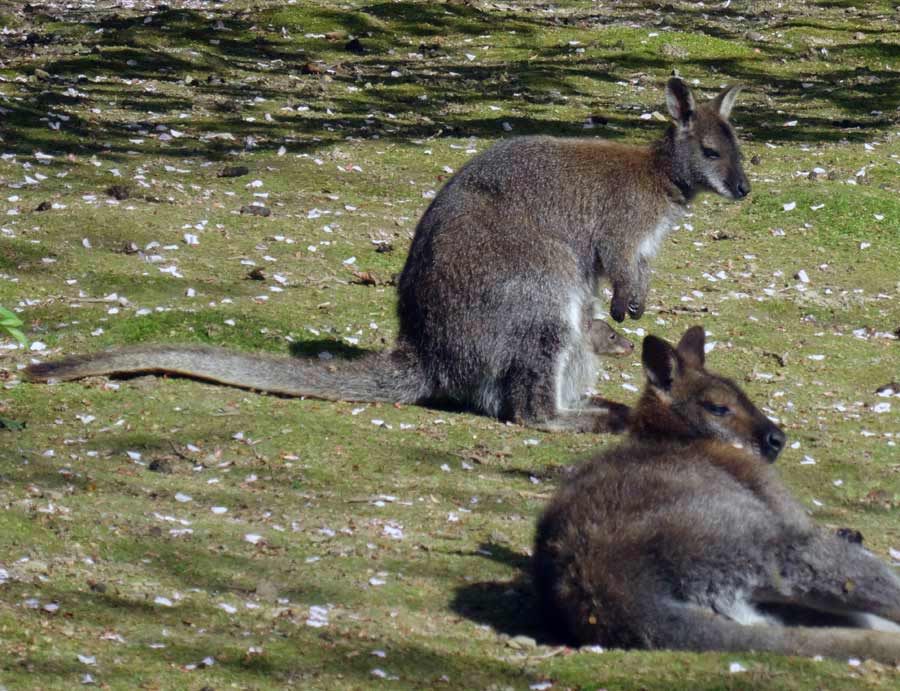 Mit etwas Glück können Zoobesucher/innen bei den Bennettskängurus ein Jungtier im Beutel des Muttertiers beobachten.