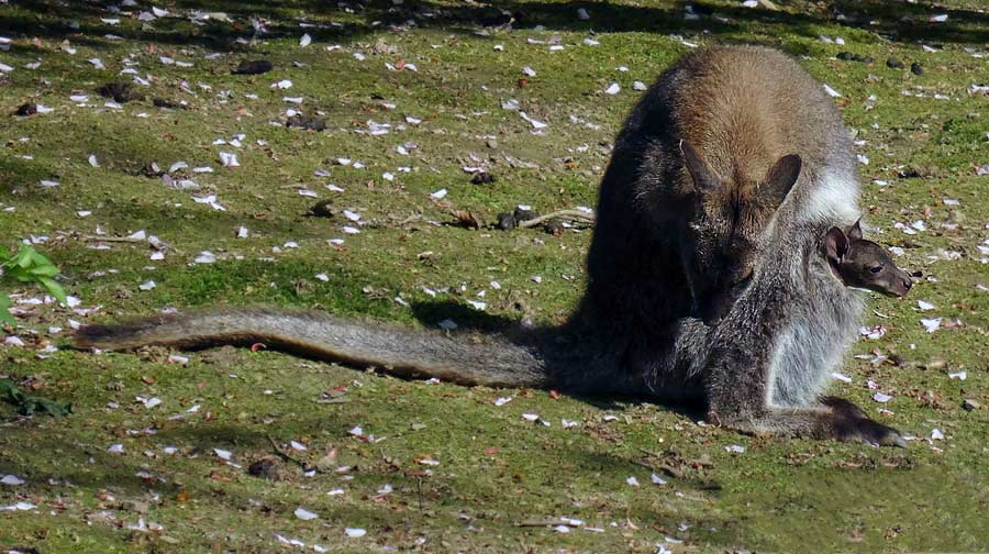 Bennettskänguru mit Jungtier im Zoologischen Garten der Stadt Wuppertal am 1. Mai 2015.
