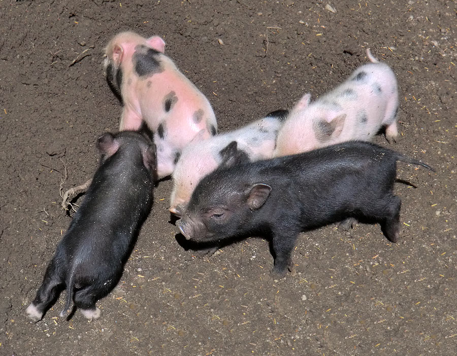 Tiere / Säugetiere / Paarhufer / Echte Schweine / Wildschwein / Mini-Schwein / 2014 Fünf Ferkel