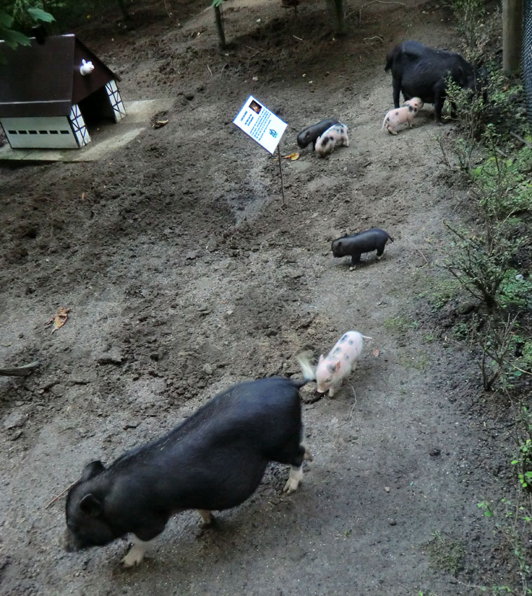 Mini-Schweine (Sus scrofa domestica) im Wuppertaler Zoo im August 2014.