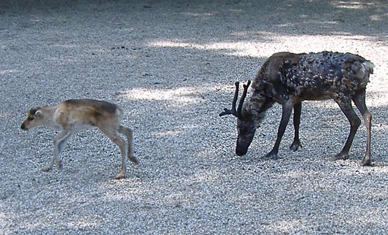 Noch unbeholfen bewegte sich das junge Rentier im Mai 2007 im Zoologischen Garten Wuppertal.