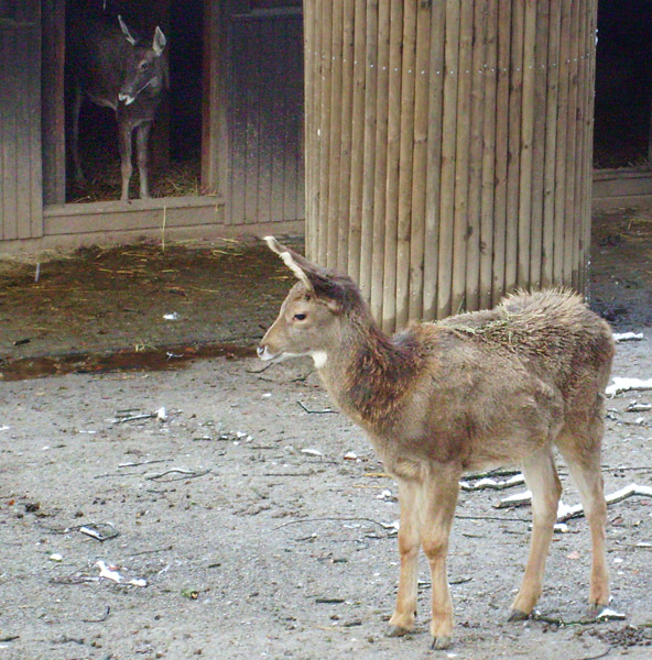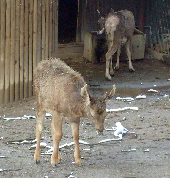 Weißlippenhirsch Jungtier im Zoo Wuppertal im November 2008.