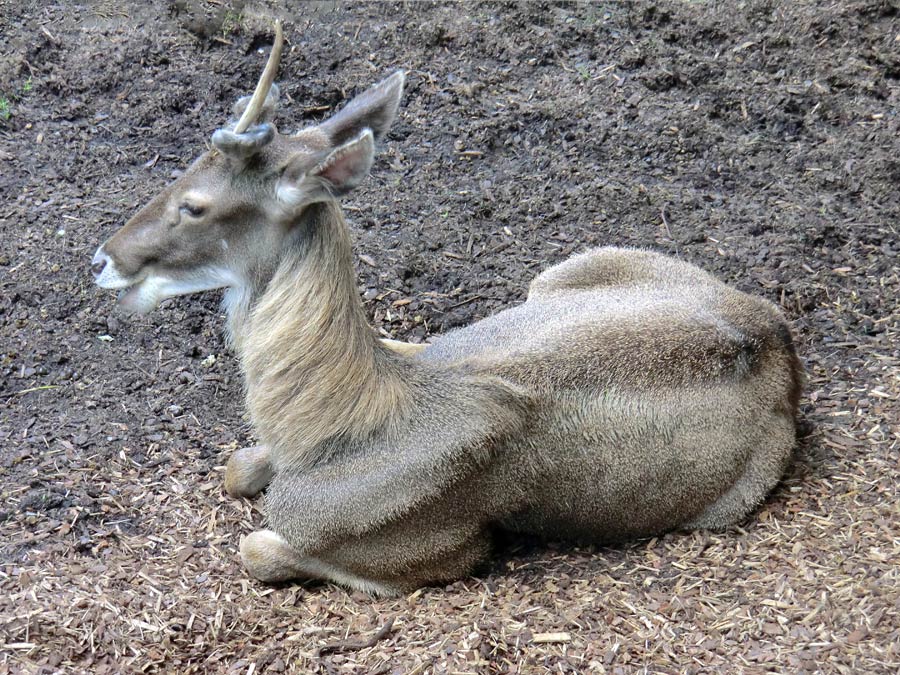 Weißlippenhirsch im Zoo Wuppertal im Juli 2012.