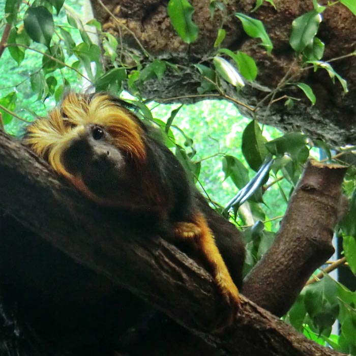Goldkopf-Löwenäffchen (Leontopithecus rosalia chrysomelas) im Wuppertaler Zoo im Mai 2014.