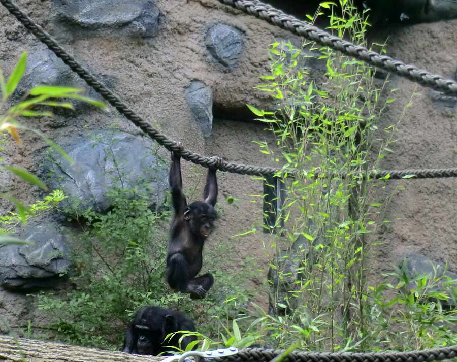 Bonobos (Pan paniscus) im Wuppertaler Zoo im Juni 2014.