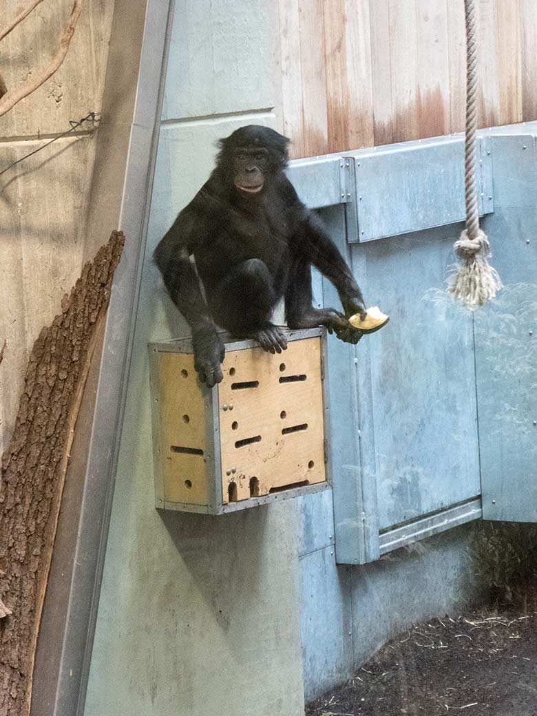 Der Bonobo-Mann "Mato" war wieder bei der übrigen Wuppertaler Bonobo-Gruppe im rechten Bereich der Bonobo-Innengehege im Menschenaffen-Haus.