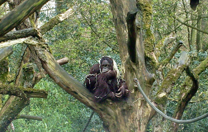 Orang-Utan auf einem Baum im Zoologischen Garten Wuppertal im April 2008.
