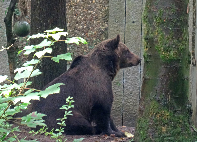 Braunbärin "Siddy" am 12. August 2016 auf der Aussenanlage der Braunbären im Wuppertaler Zoo.