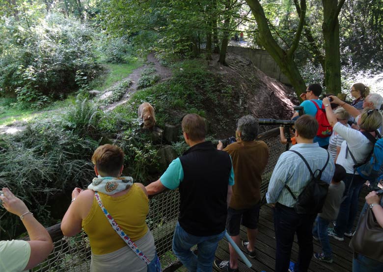 Zoobesucher/innen konnten am Freitag, dem 12. August 2016, die Neu-Wuppertalerin "Siddy" auf Erkundungstour auf der Braunbären-Aussenanlage beobachten.