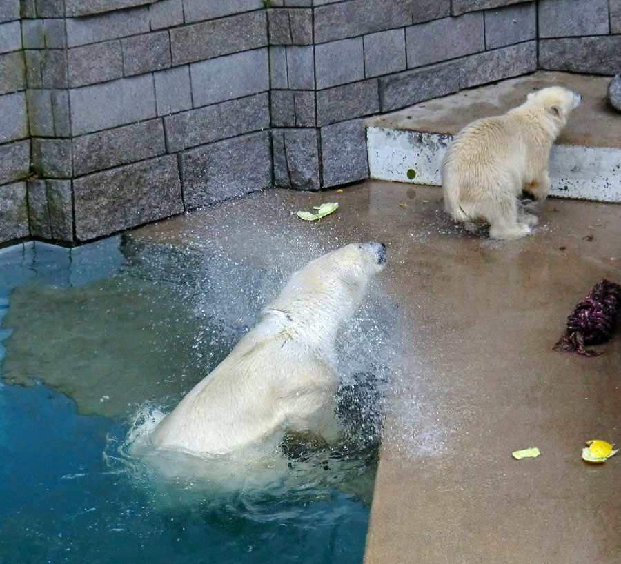 Eisbärjungtier ANORI und Eisbärin VILMA am 21. Juli 2012 im Zoo Wuppertal.