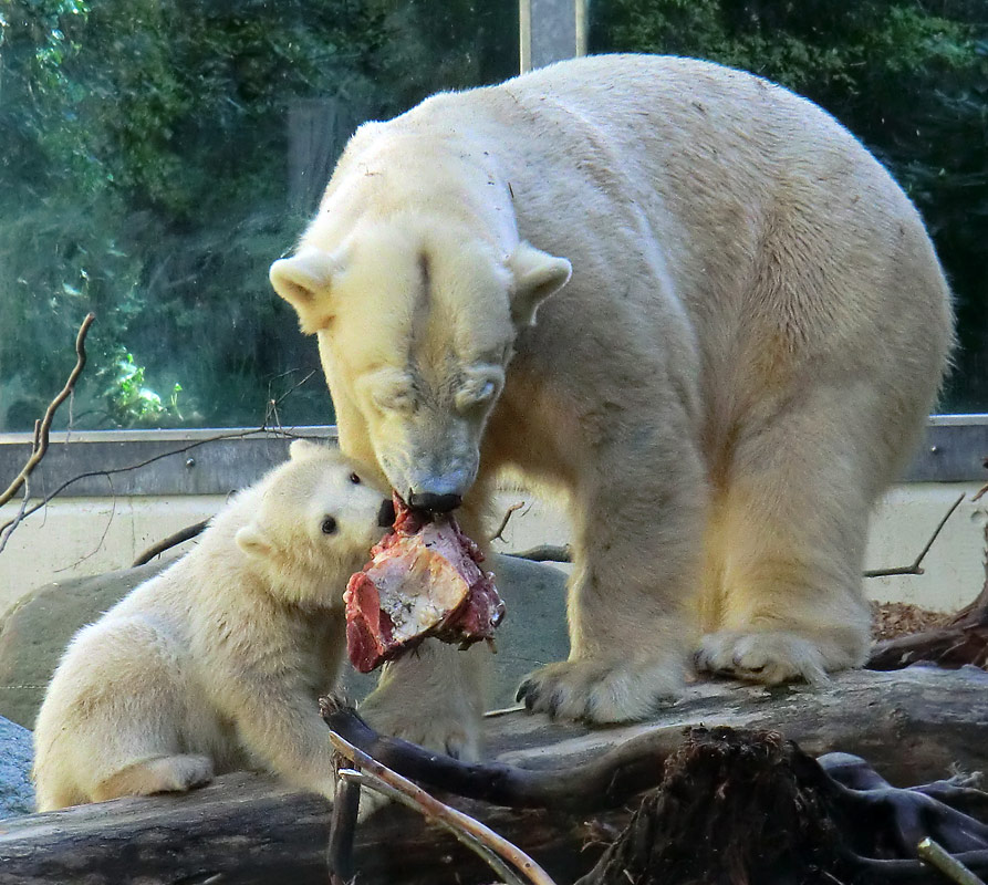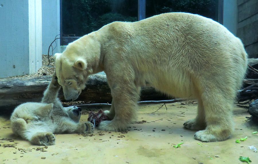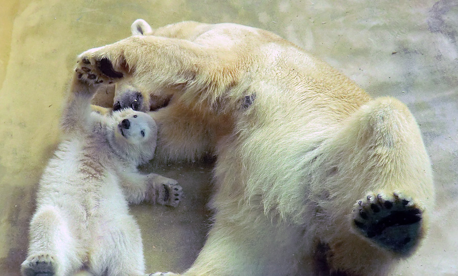 Am Mai-Samstag vor Muttertag 2012 spielte Eisbärbaby ANORI immer wieder mit der Eisbärmama VILMA.