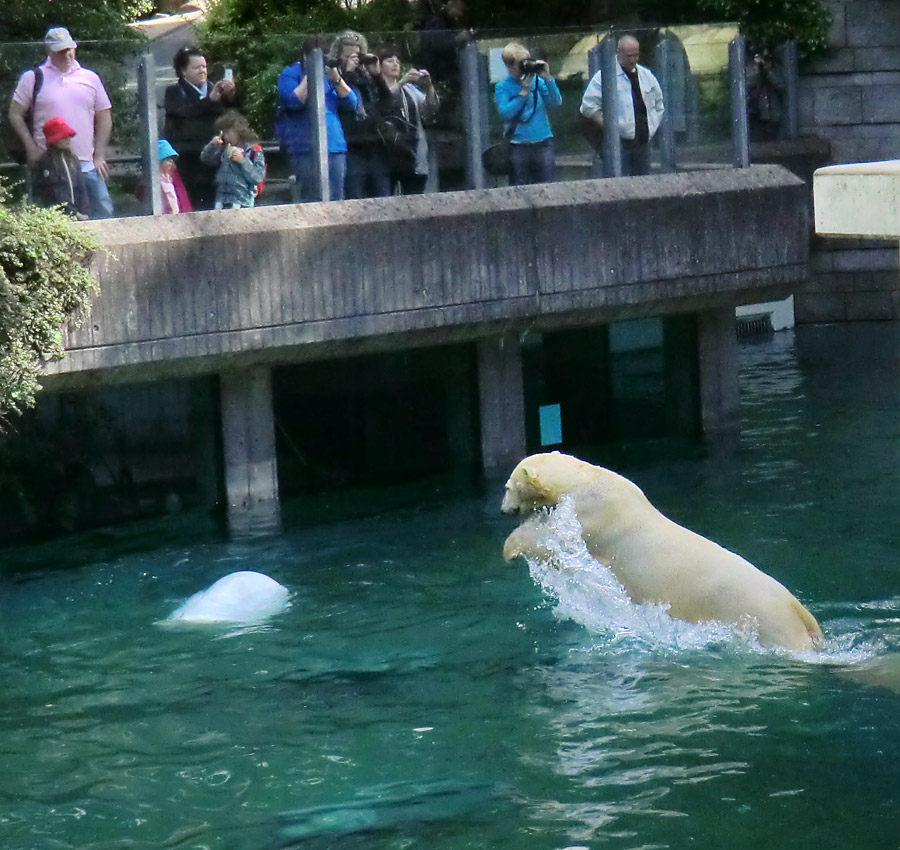 Eisbärmädchen ANORI und Eisbärin VILMA am 8. Juni 2012 im Zoo Wuppertal.