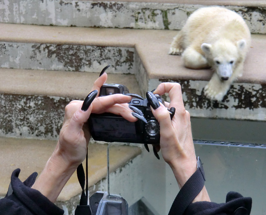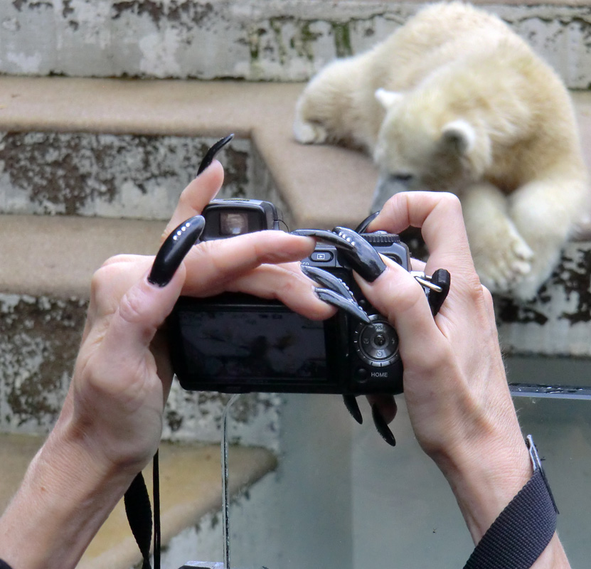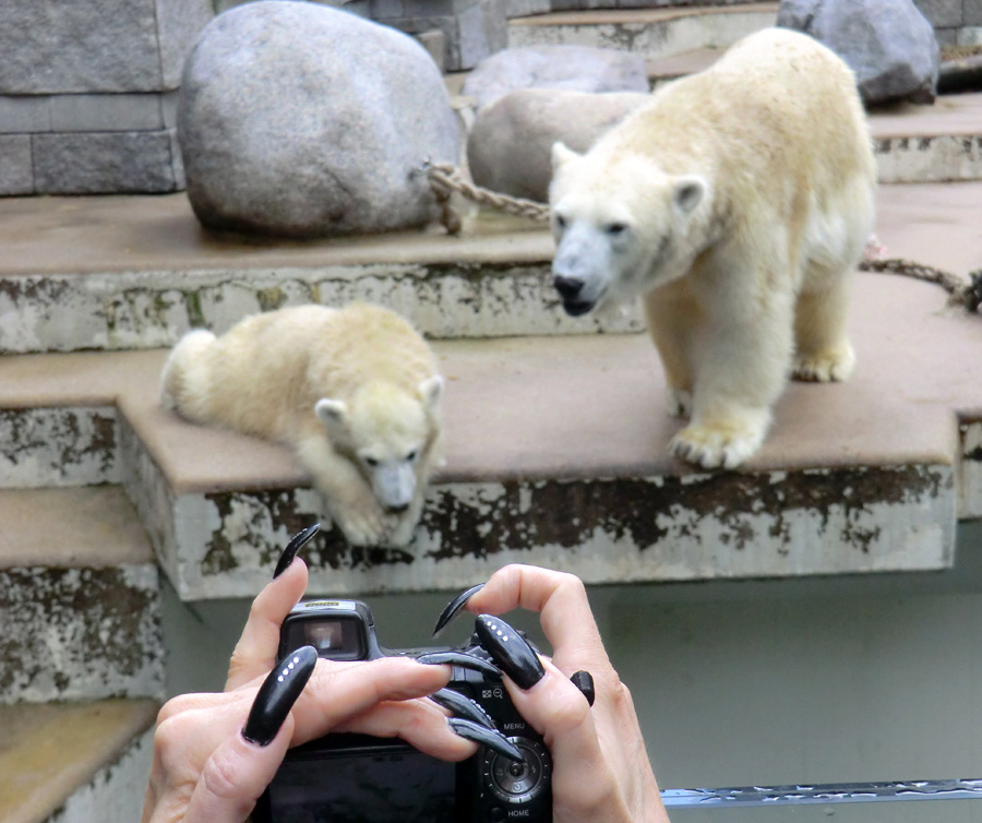 Für die Zoo-Besucher/innen waren die beiden Eisbärinen ideale und beliebte Fotomotive. Einige Besucher/innen sinnierten, ob die Krallen der Eisbären oder die Fingernägel einer Fotografin länger waren.