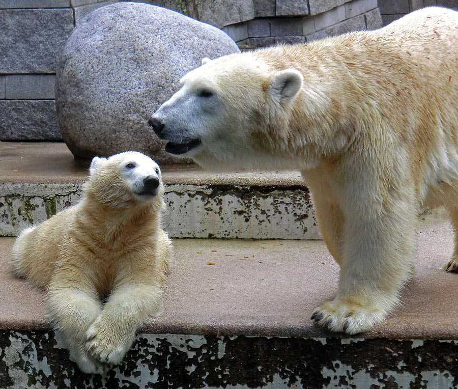 Eisbärjungtier ANORI und Eisbärin VILMA am 22. September 2012 im Zoo Wuppertal.