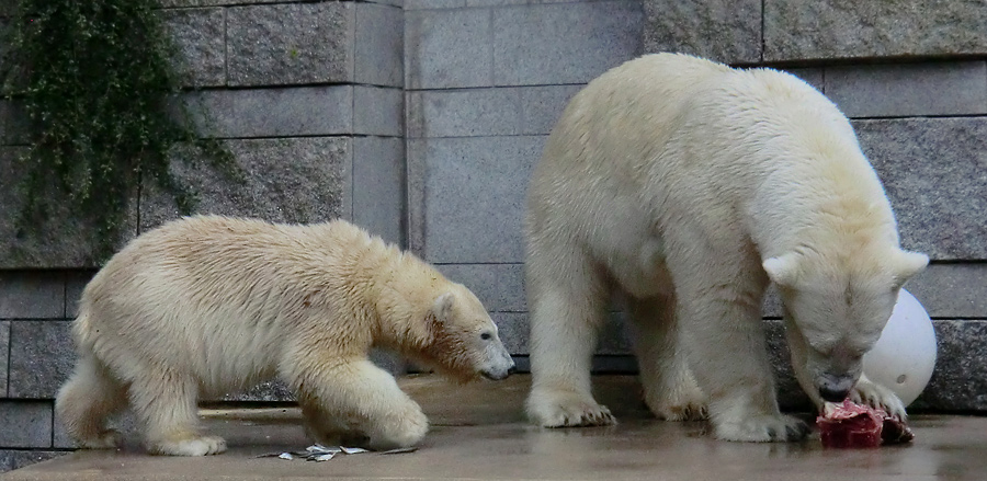 Eisbärjungtier ANORI und Eisbärin VILMA am 4. August 2012 im Zoologischen Garten Wuppertal.