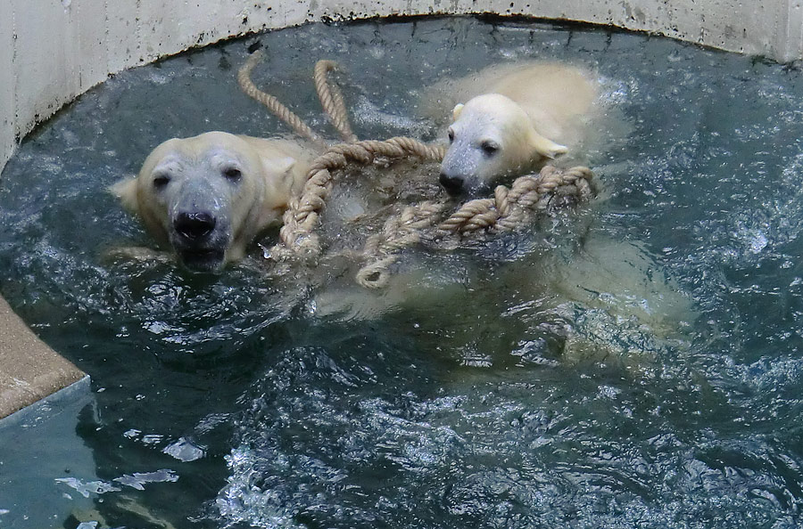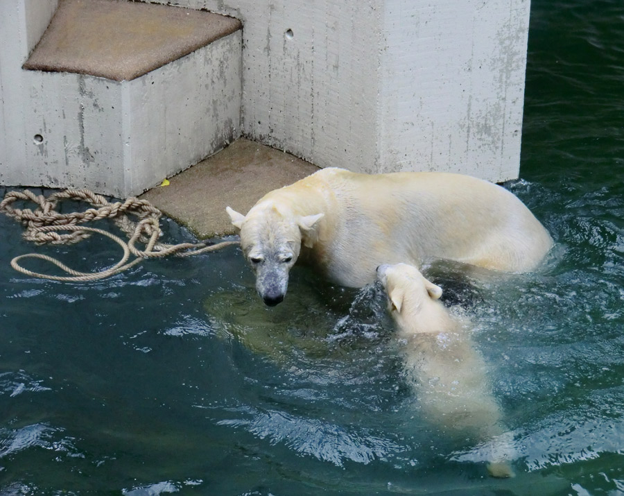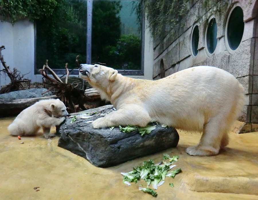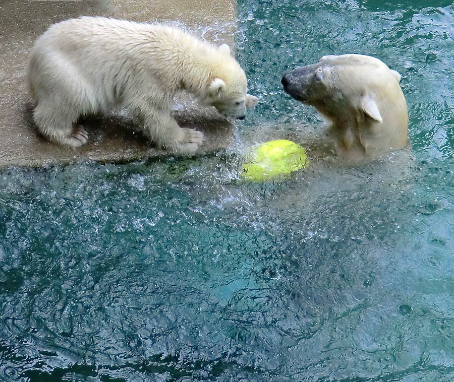 Eisbärmädchen ANORI und Eisbärin VILMA am 9. Juni 2012 im Zoo Wuppertal.