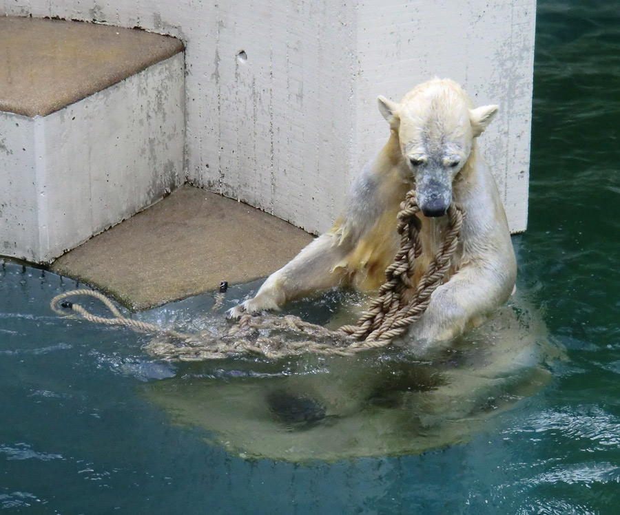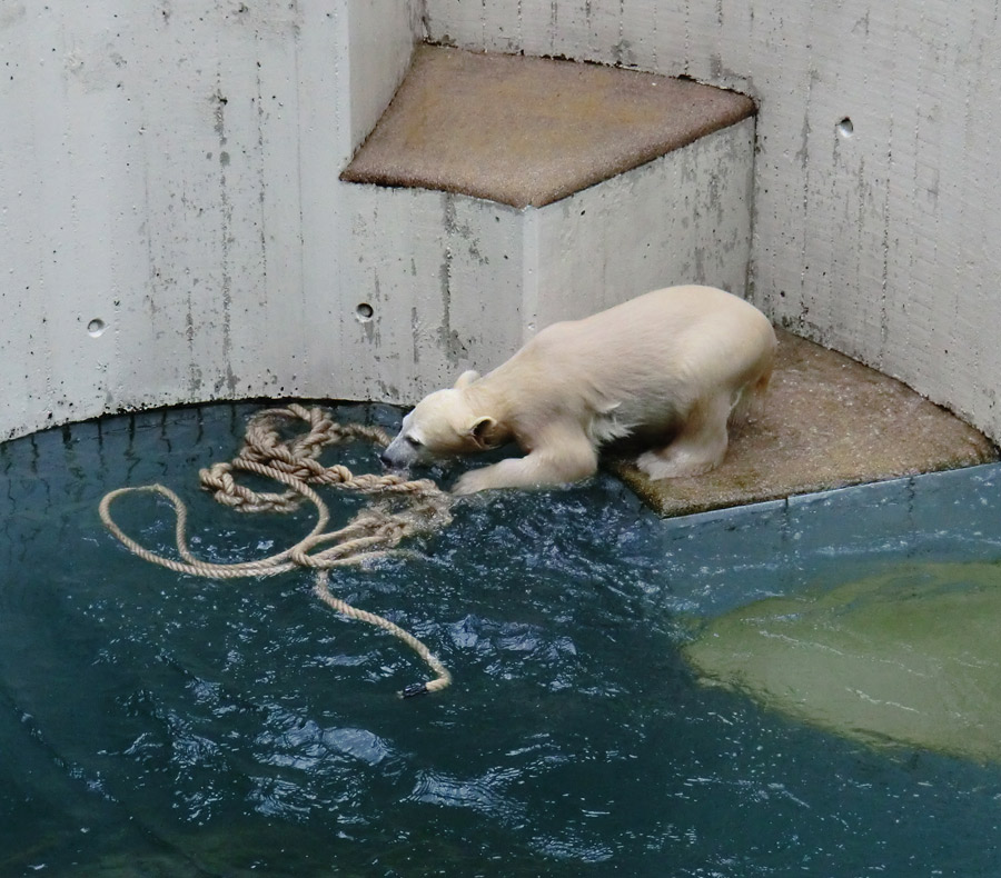 Anschließend löste VILMA das Seil vom Stein. "So ein Eisbär kann sogar lernen" kommentierte dies eine Zoobesucherin.