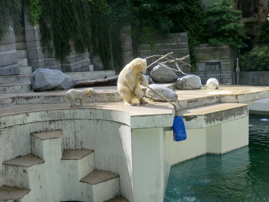 Eisbärmädchen ANORI und Eisbärin VILMA am 9. Juni 2012 im Zoologischen Garten Wuppertal.