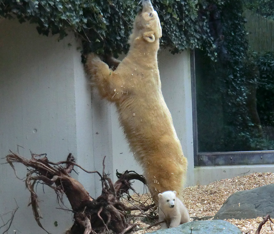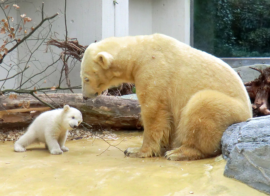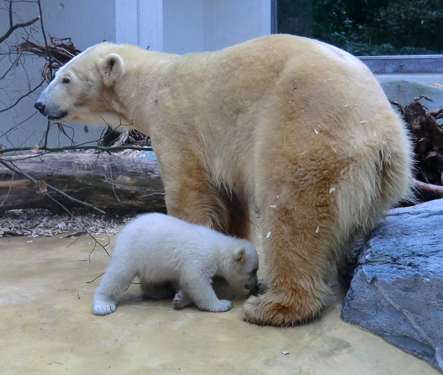 Eisbärin VILMA und Eisbärbaby ANORI waren am Mittwoch, dem 28. März 2012, erstmalig einige Stunden für die Zoobesucher/innen auf der Mutter-Kind-Anlage im Zoologischen Garten der Stadt Wuppertal zu sehen.