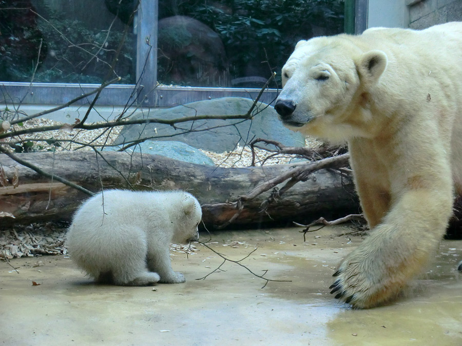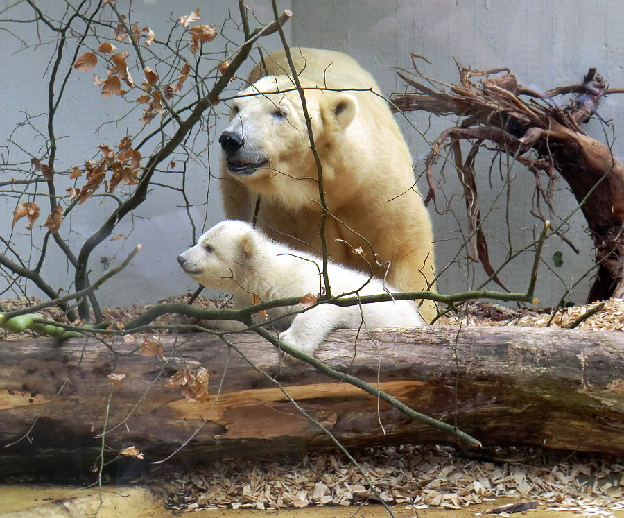 Eisbärin VILMA mit Eisbärbaby ANORI am 29. März 2012 im Zoo Wuppertal.