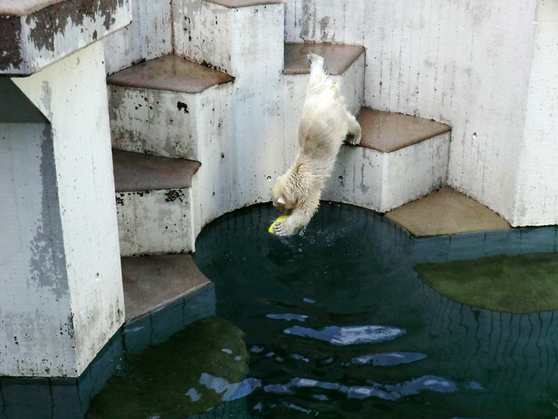 Eisbärjungtier ANORI nach dem Sprung von der Plattform am 4. August 2012 im Zoologischen Garten Wuppertal.