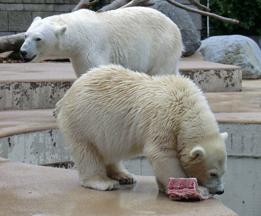 Eisbärjungtier ANORI und Eisbärin VILMA am 4. August 2012 im Wuppertaler Zoo.