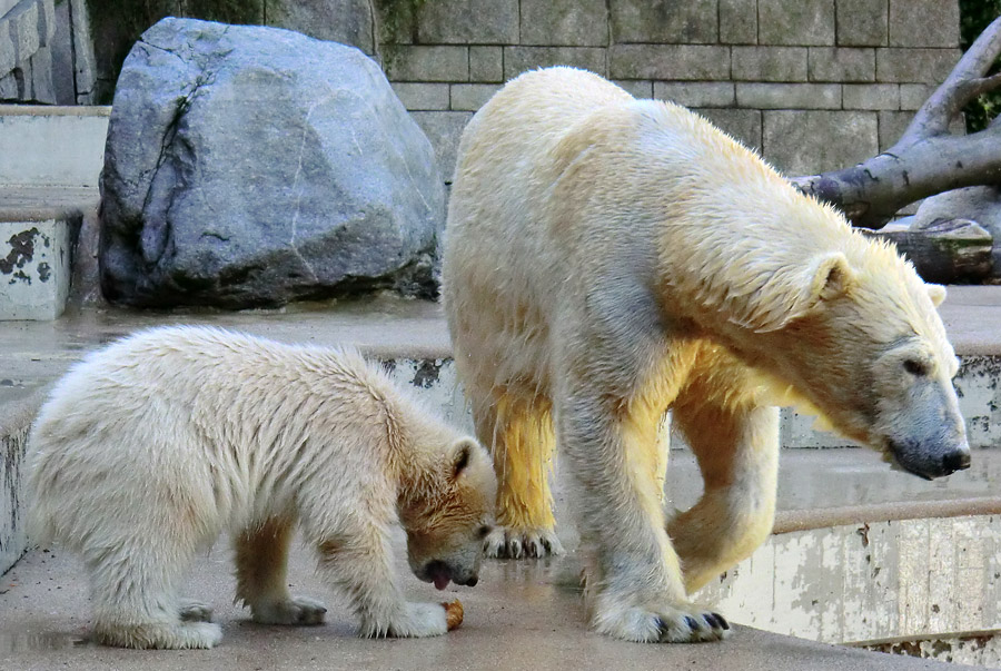 Eisbärmädchen ANORI und Eisbärin VILMA am 10. Juni 2012 im Zoologischen Garten Wuppertal.