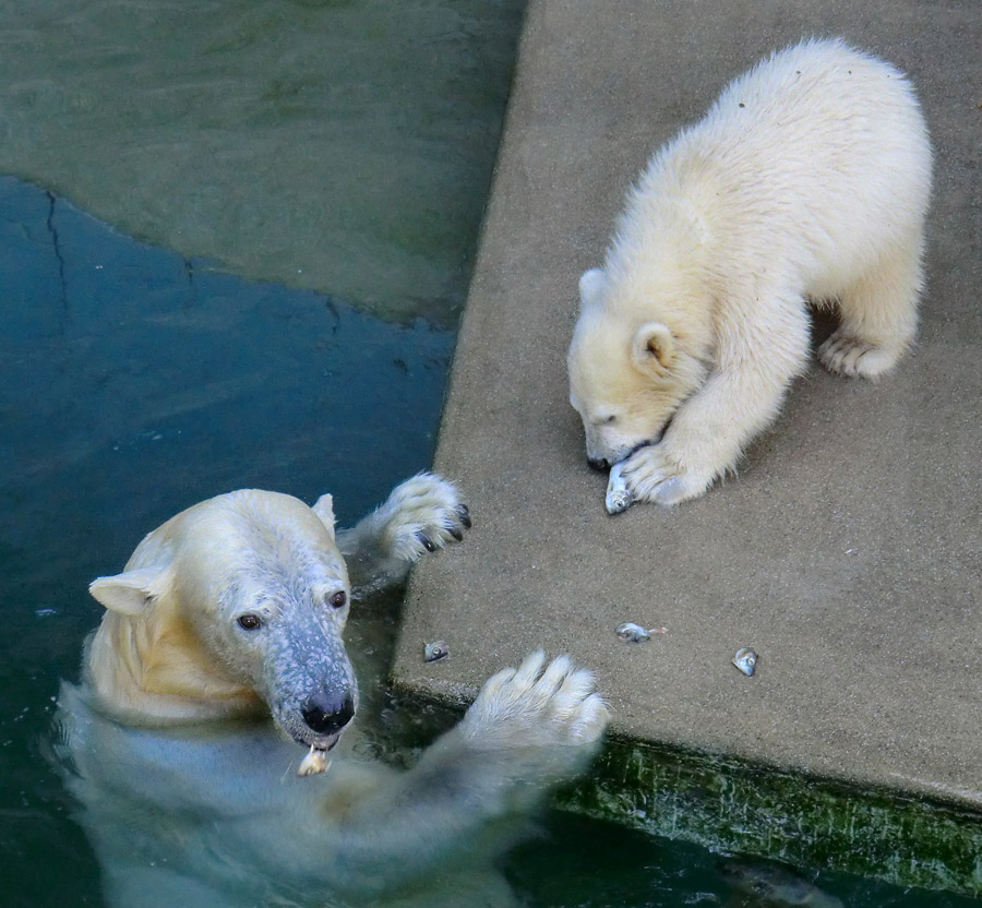 Eisbärmädchen ANORI und Eisbärin VILMA am 10. Juni 2012 im Zoo Wuppertal.