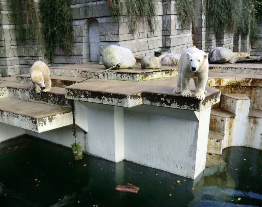 Eisbärin ANORI und Eisbär LUKA im Zoologischen Garten Wuppertal am 30. Oktober 2013.